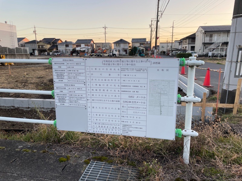 犬山市梅坪のクリニックやレストランなどが集まるエリアに、大きな土地が埋め立て整地されています。
